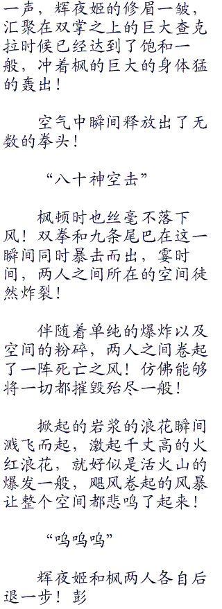 枫不敢怠慢,既然有了九喇嘛的查克拉的帮助,那么从辉夜姬的世界中逃出去就不是什么难事!