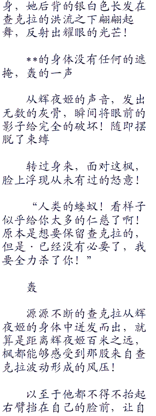“我从来没有这么认为过!!不过我的目的已经达到了!!我承认你很强,辉夜姬·所以我要感谢你!”