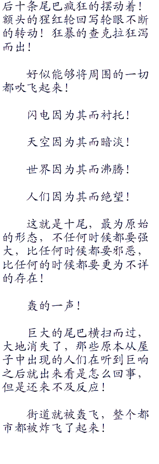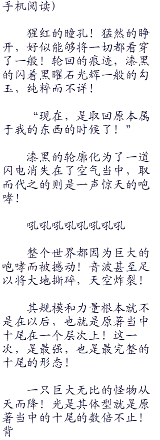 似乎就连后前的九大尾兽都收到了一丝的影响,特别是最强的九尾,更是如此,被称为天灾的化身,怨恨和愤怒!