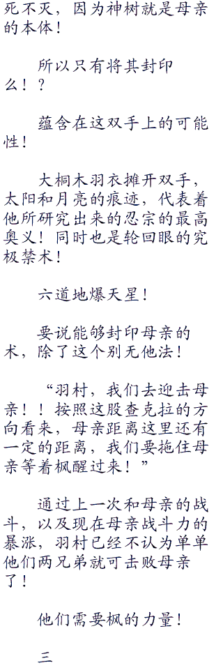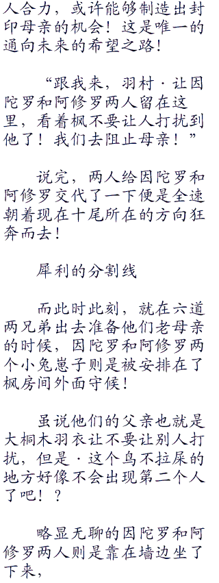 但是查克拉的量却和辉夜姬有着一定的差距,最后也不能确定强度如何,但是·这是唯一的办法!