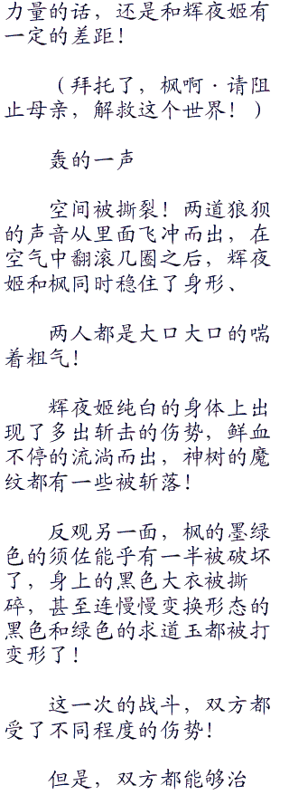 羽衣也是焦急无比,两人在旁边等待着封印的机会!虽说枫变得强大无比了,但是如果单论