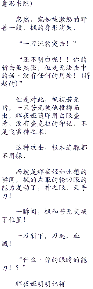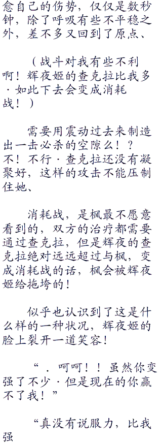 如果是这样的话,那一切就都说得通了,最初的一击,辉夜姬被莫名其妙的击中,枫使用的应该是击碎了未来!