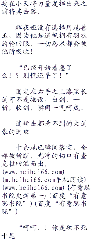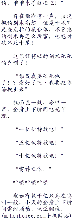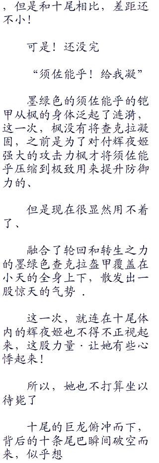 枫懒得和这个女人争辩,不知道是谁在原著中融合十尾之后成为了一个暴走的怪物,要不是你吸收老子的查克拉,能够做到这一步么!?