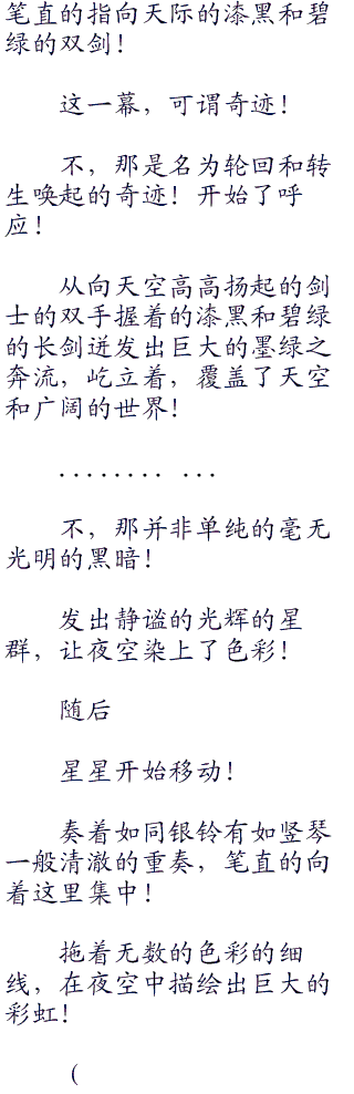 但是在他们的眼中好似出现了幻觉一般,那是一个高举双剑的男人!改写了天空,改写了世界!