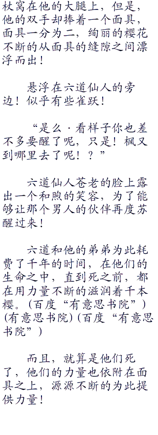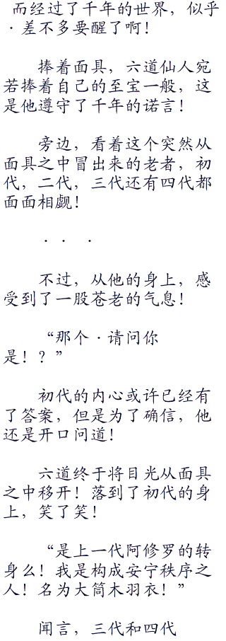 枫笑了笑,没有说完,下次见面的时候,恐怕就是千年之后了吧,那个时候六道老头已经不在了。