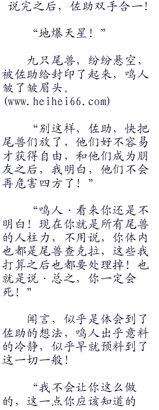 “不需要你们的力量!想要解开无限月读,只需要拥有全部尾兽查克拉的鸣人和拥有轮回眼的佐助,只要他们一起结下和解之印,忍术就会完全的解开!”