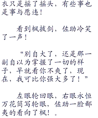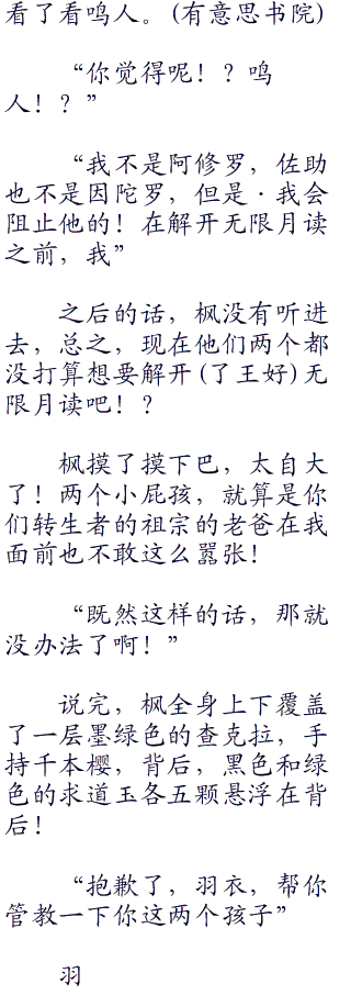 枫摇了摇头,果然还是变成现在这个样子了啊!!之前别天神对佐助的影响果然已经消失了!