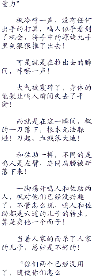杀人,从第一次动手之人,枫就从未恐惧过,之后,杀人,只是为了达到某个目的的一种手段罢了!