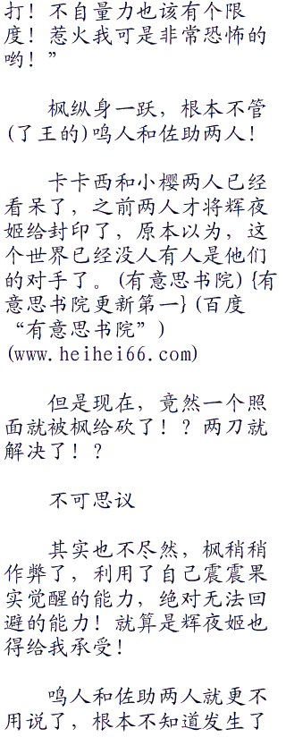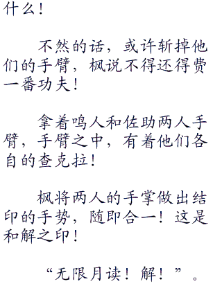 所以,他不甘心,凭什么,从小到大,枫一直都走在他的面前,每次认为自己可以超越他的是,他都会拿出压倒性的力量让自己绝望!