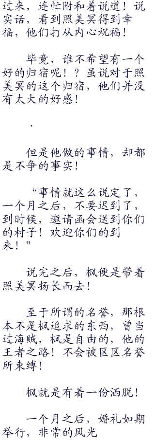 枫没有理会,而是转过头来,看了看面色有些红润的照美冥、