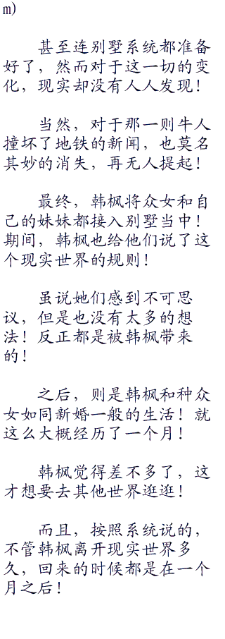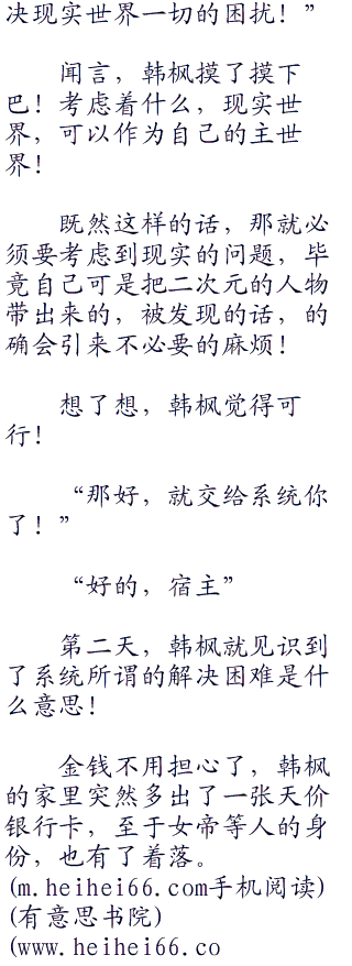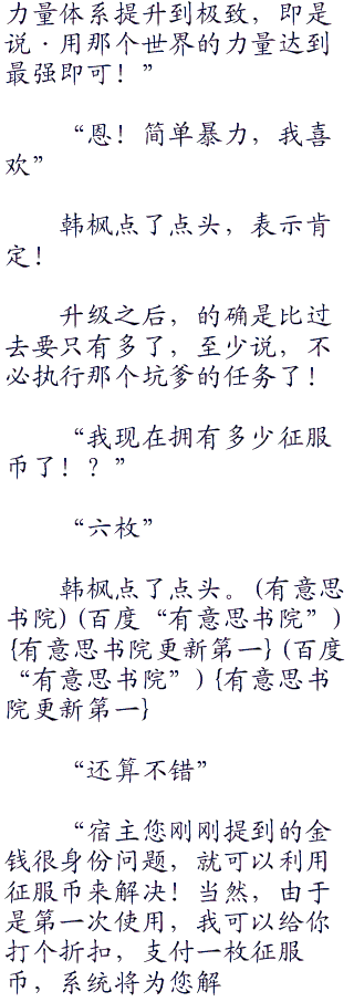 我猜你妹啊!韩枫简直不想和系统吐槽了,升级了的确是变得人性化,但是·这尼玛人性化过头了吧!