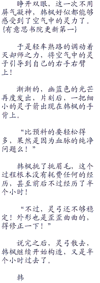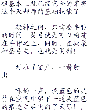 当然,就算是不具有灭却十字,灭却师一人可以构造出灵弓,只不过这样的话,发射出来的神圣弓矢在威力上就会大打折扣!