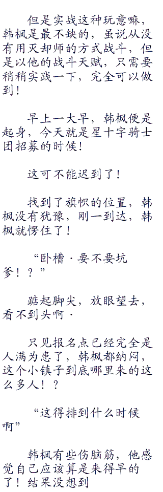 对于自己在灭却师道路上的程度,韩枫无法做出准确的评估,至少要找一个灭却师的骑士打一场才知道!