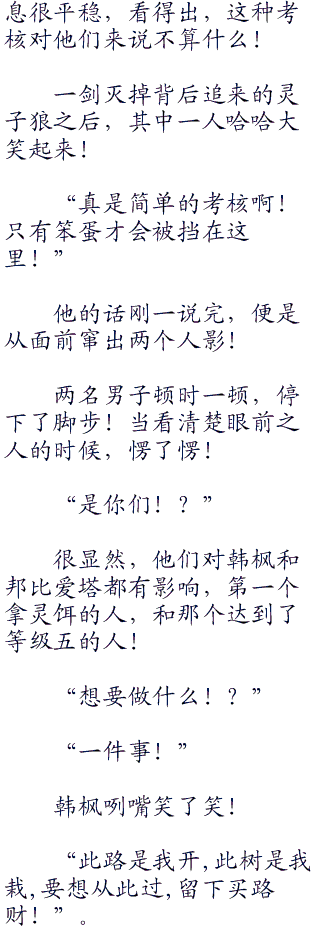 韩枫纵身一跃,消失在了森林中,见此,邦比爱塔也跟上!