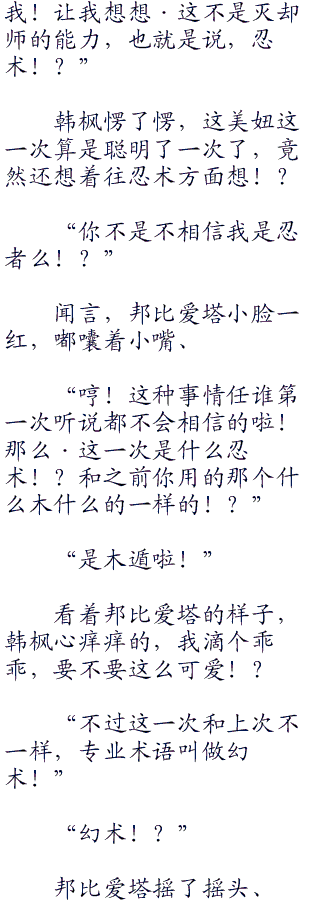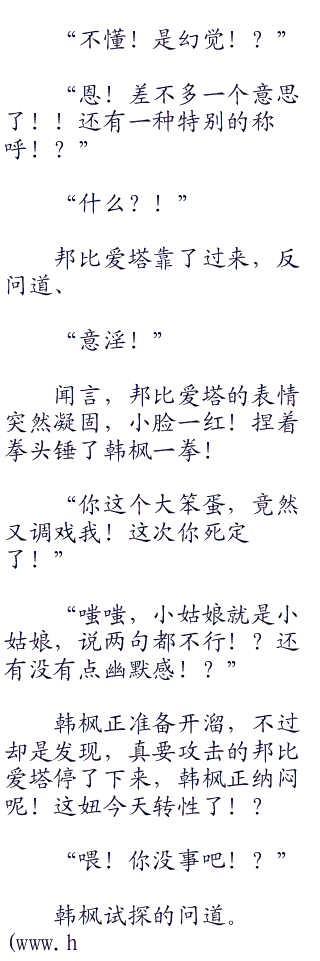 韩枫的手来回在邦比爱塔的眼前晃了晃才让邦比爱塔回过神来!