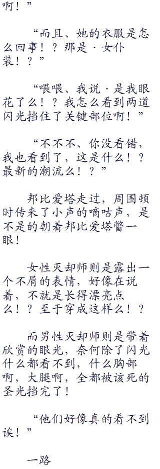 邦比爱塔撇了撇嘴,让她穿着这一身衣服去考核!?天哪,她觉得世界要变天了、。