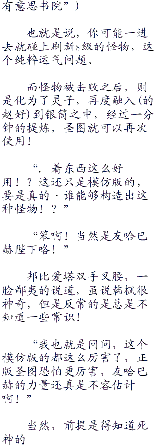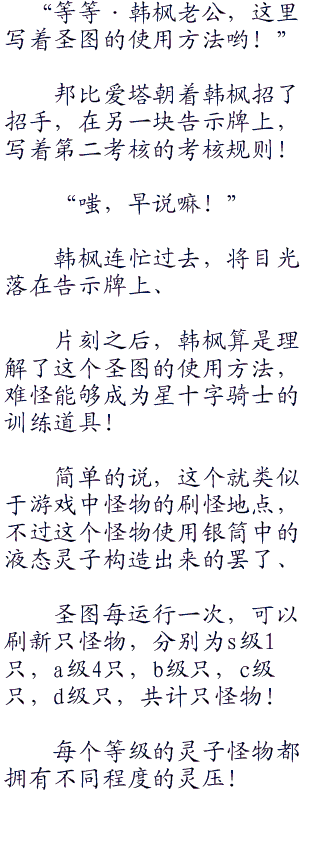 这个名词韩枫也是第一次听见,随即回味着刚刚邦比爱塔的谈话。