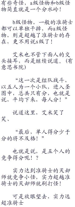 “第二考核是计分制的!d级怪物1分,c级怪物2分,b级怪物3分,a级怪物分,s级怪物分!总计分!”