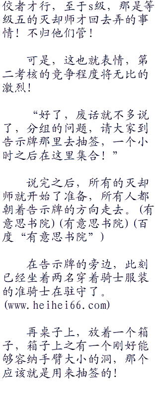 “咳咳!安静安静,关于那个等级三的灭却师,这不是重点!现在让我来告诉你们,第二考核,准骑士考核的规则和合格条件吧!”