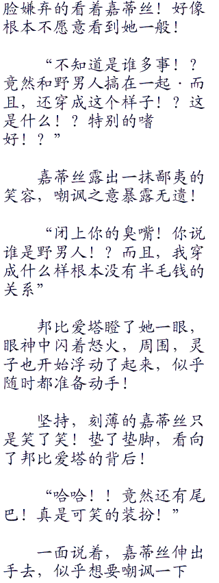 说完之后,嘉蒂丝歪了歪头,目光锁定在邦比爱塔的身上!露出一个莫名的笑容!