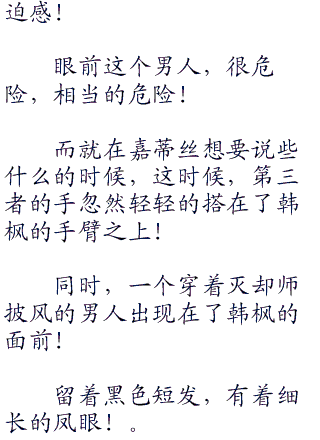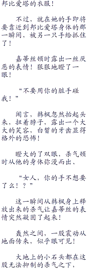 韩枫和邦比爱塔疑惑的看了他一眼,不知道他为什么会露出这样的表情来!