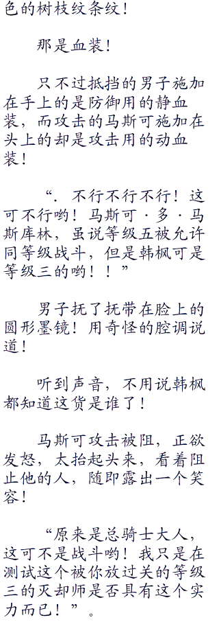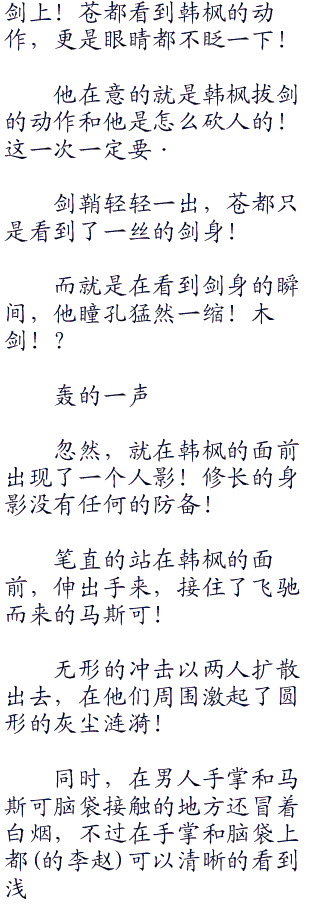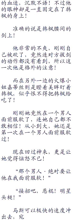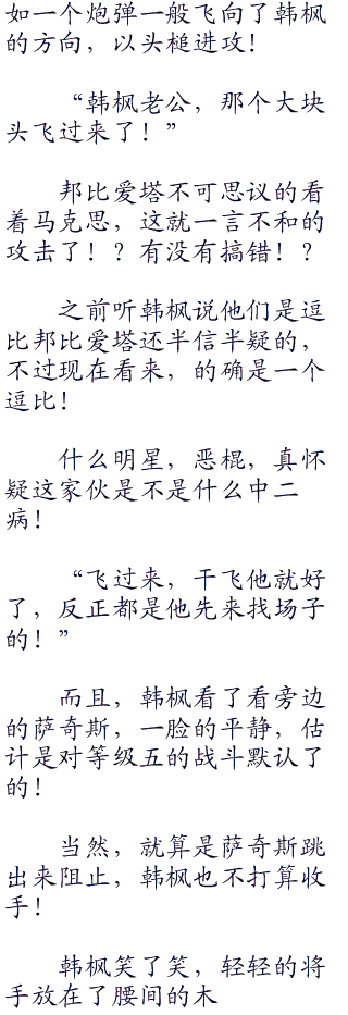 马斯可高大的身体俯视着韩枫,并用手指着他的鼻子呵斥道!