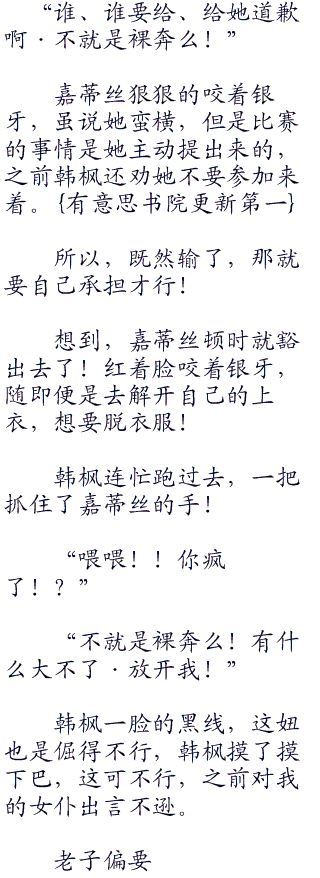 不过他倒是没有说什么,只是睁一只眼闭一只眼!毕竟这是之前比赛的赌约!