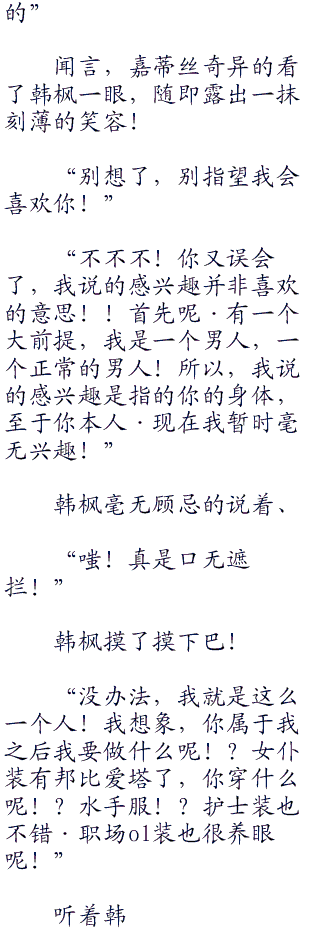 嘉蒂丝和邦比爱塔两个人都不可思议的看着韩枫!