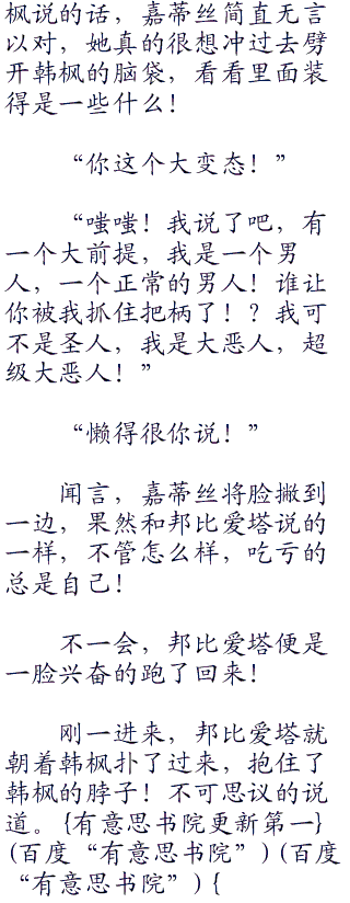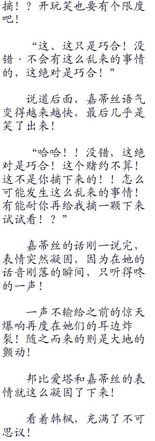嘉蒂丝狠狠的瞪了韩枫一眼,心想着,人家自己掉下来关你什么事!?你这就胜利了!?