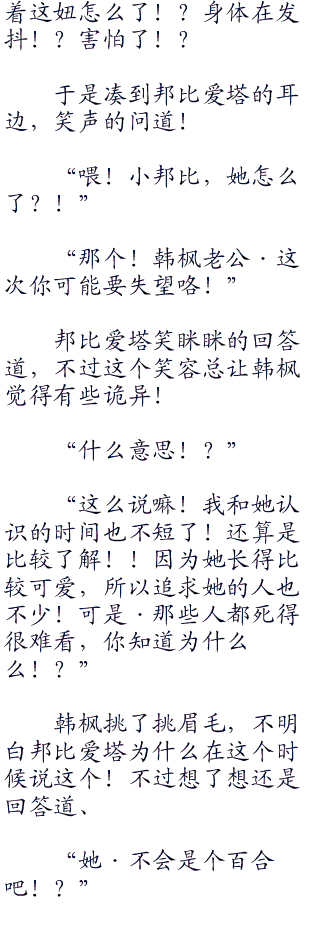 韩枫见到嘉蒂丝的身躯颤抖,还有些纳闷!想