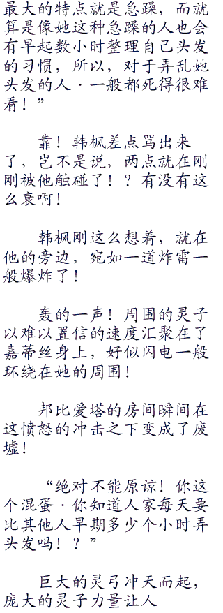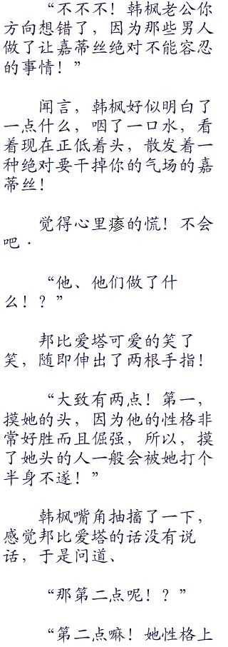 没有人比邦比爱塔更了解嘉蒂丝了,所以,她现在也是知道,韩枫现在做了绝对绝对绝对不应该做的事情!!