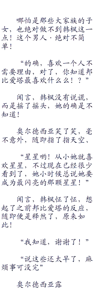 “话也不能这么说,我不可能把自己女儿交给一个庸人!我可以不在乎的你的身份,你的地位,但是你得让我看到你的决心才对!”