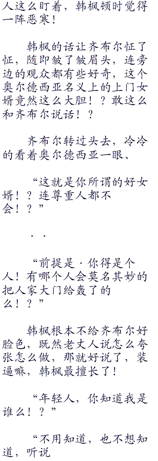 奥尔德西亚随即将目光投向了韩枫,几乎是一瞬间,所有人的目光都齐刷刷的看向了韩枫!