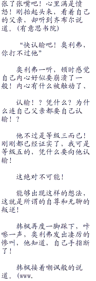 将灵子球丢在一边,韩枫笑着居高临下的看着奥利弗,满脸的嘲讽!