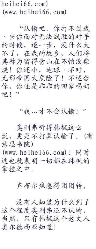 齐布尔百口莫辩,测试是不会出错的,看着自己被韩枫踩在脚下的儿子,只期望他快点认输,留得青山在不愁没柴烧啊!
