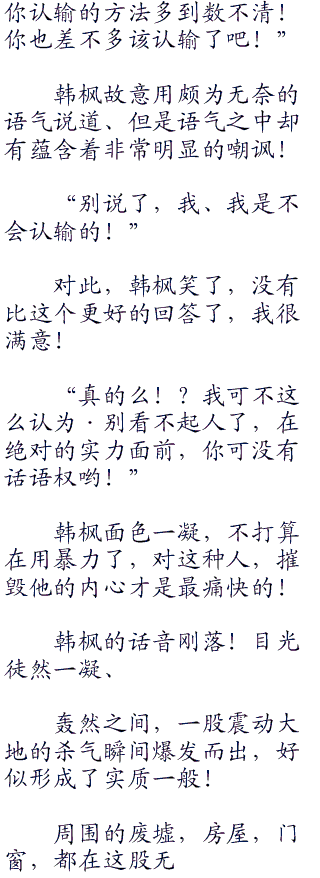 要是这被韩枫知道的话,估计得郁闷,用上了灵力估计就起不到这个效果了、