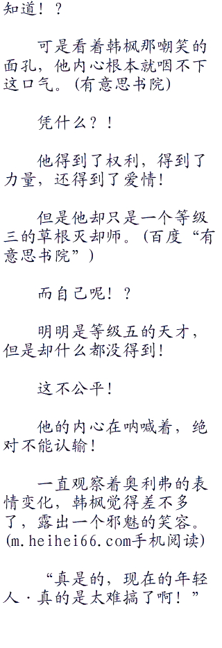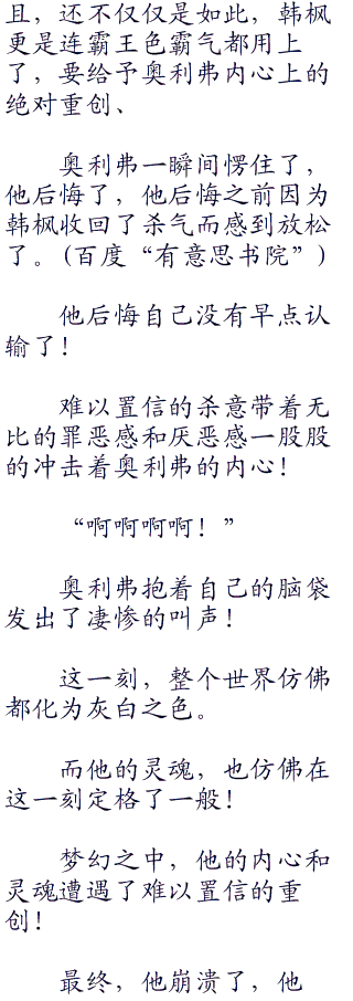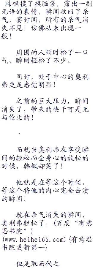 韩枫继续嘲讽着,果然说完之后奥利弗面色变得狠毒起来!