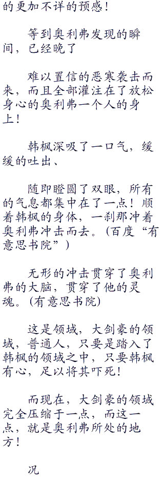 人群中有人甚至双腿颤抖不自主的后退了,连周围的感觉都如此的强烈,那么处于中心的奥利弗承受的杀气可想而知!那可正是无边的恐惧、