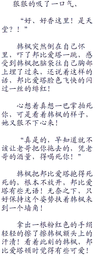 韩枫苦笑无比,他差不多可以想到邦比爱塔要和他说什么了,于是做出了一个不用担心的手势,说道。