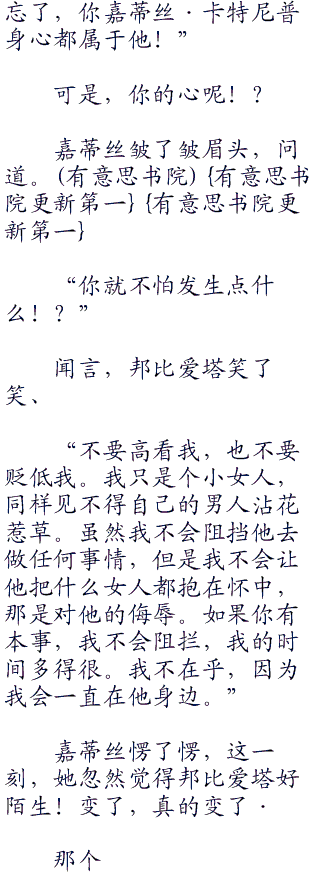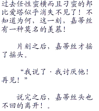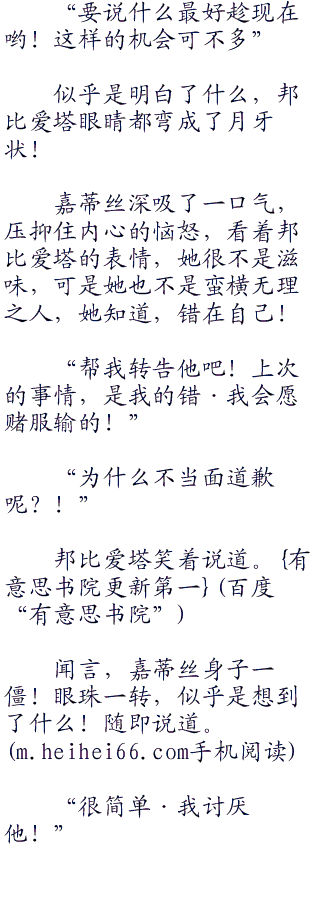 嘉蒂丝犹豫了一下,咬了咬嘴唇,想要说什么!却犹豫不决,邦比爱塔见此,笑着说道、