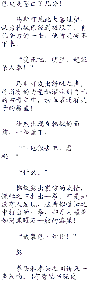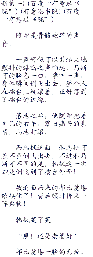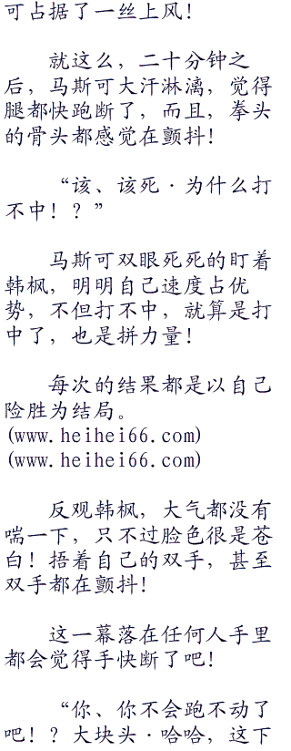而马斯可眼尖,看到了韩枫这个细小的动作,心里大喜,心想着这恶棍刚刚那一下绝受伤了。