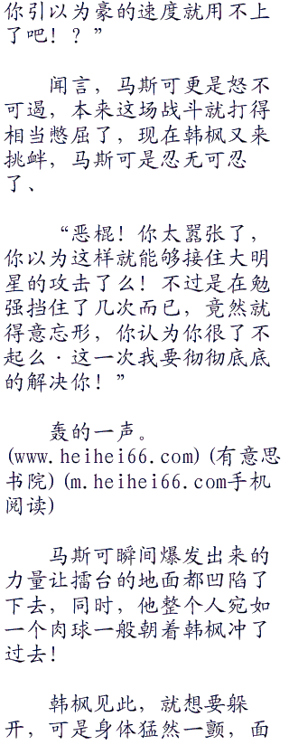 韩枫忍不住嘲讽道,这一次却是狼狈的躲避,故意不用拳头。马斯可暗道,果然手受伤了、更是肆无忌惮的笑道、