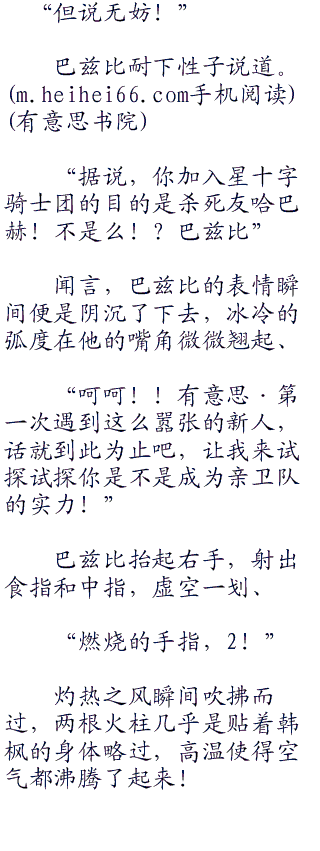 见到韩枫沉默不语,巴兹比冰冷的眸子中闪过一丝的怒火。