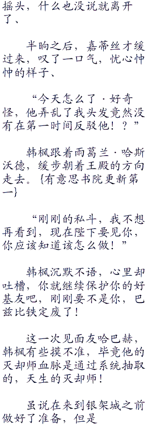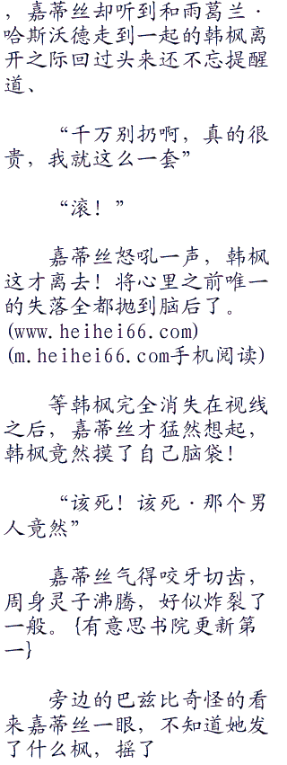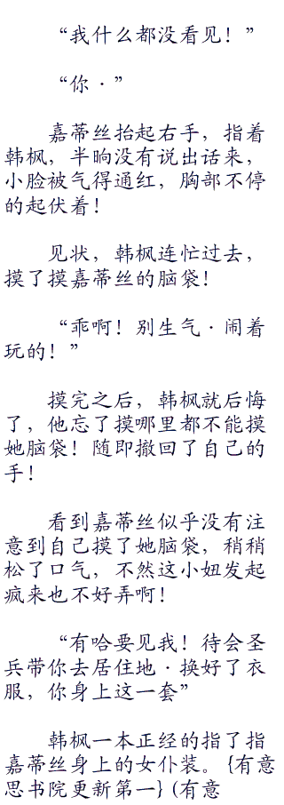 临走之前,韩枫走到嘉蒂丝面前!脸色一变,又变回那个笑眯眯的牲畜无害的样子。