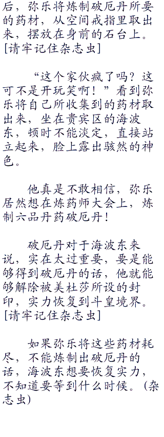 稍稍思考以后,弥乐做出了决定,炼制六品丹药破厄丹!