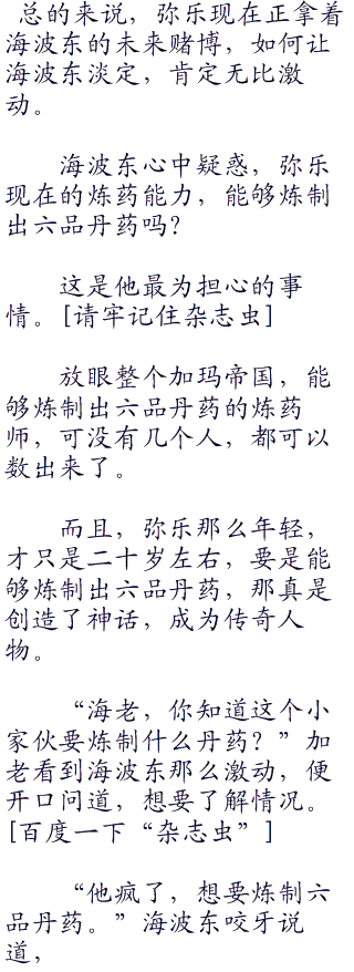 弥乐要是炼制五品丹药的话,未必能够将炎利轻松击败,这样反而有点悬念。