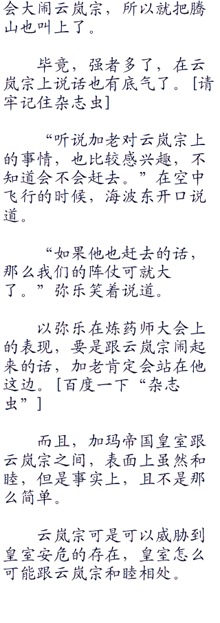 “如此甚好,不然的话,我可不会让你好过。”弥乐并没有拐弯抹角,直接开口说道,“最近一段时间,云岚宗那边应该有点事情吧?”