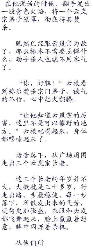 在他说话的时候,脚下微微发力,整个人已经冲了出去,落到广场上,和云岚宗众人对峙。