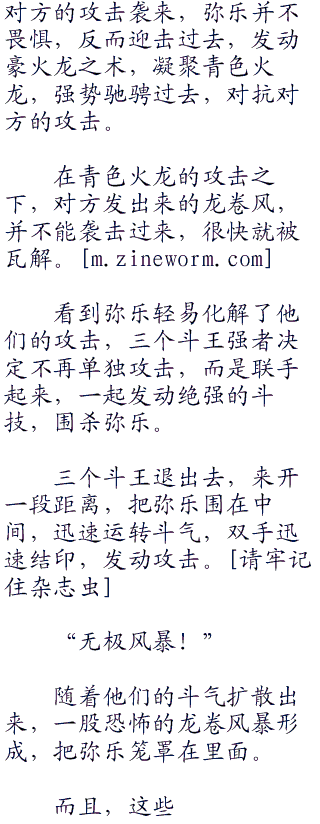 三个斗王长老叱喝起来,发动斗气之翼,迅速冲到空中,向着弥乐逼近过来,联手向弥乐发动攻击。