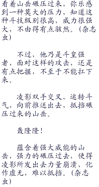 弥乐向前冲了过去,迎击凌影,两人再度缠在在一起,展开激烈的战斗。
